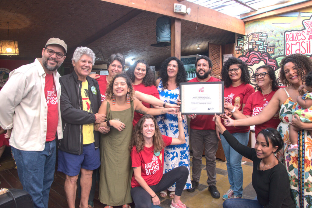 Mais de 400 pessoas participaram da celebração dos oito anos do Raízes do Brasil, realizada em 31 de maio, no bairro de Santa Teresa, Rio de Janeiro. A programação teve início por volta das 9h da manhã, com o tradicional Café Camponês e a animada Feira Camponesa. Às 14h, foi servido o tão aguardado almoço com a famosa feijoada da Tia Doca, que contou com uma versão vegana preparada em parceria com Regina Tchelly. Durante toda a tarde, o evento seguiu com falas públicas de representantes de movimentos sociais, sindicatos, organizações populares e lideranças políticas. A celebração foi encerrada em grande estilo com a apresentação musical do Sarau da Terra, conduzido por Ricardo Moreno, trazendo ainda mais encanto e emoção ao dia.